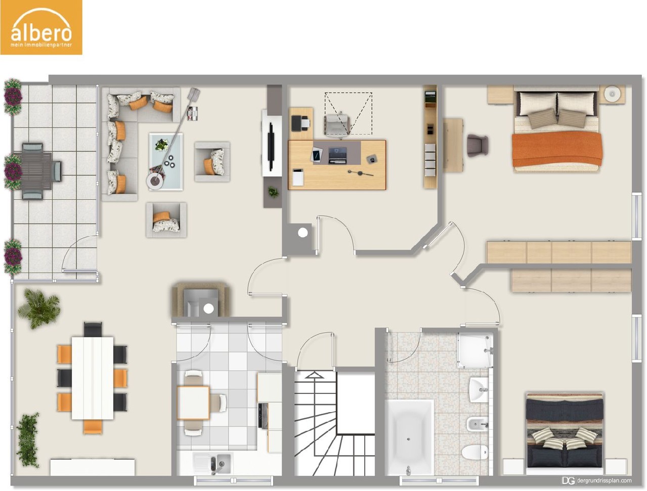 Die Dachgeschosswohnung ist aktuell vermietet, während die großzügige Erdgeschosswohnung mit sonniger Terrasse ab Februar bezugsfrei wird. Im Souterrain befindet sich – zusätzlich zur Haustechnik, Lagerfläche und Hauswirtschaftsraum – ein wohnlich ausgebautes Appartement, das nicht zur Wohnfläche zählt. Ob als Gästebereich, Rückzugsort für Teenager oder Homeoffice – dieser separate Bereich eröffnet vielfältige Nutzungsmöglichkeiten.