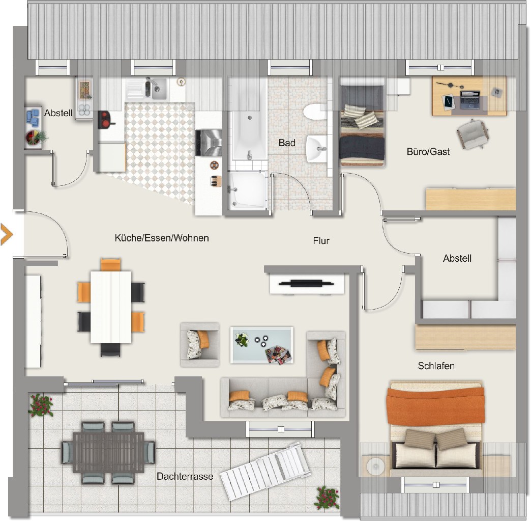 2 Abstellräume in der Wohnung mit insgesamt 7m² (dafür kein Kellerraum)